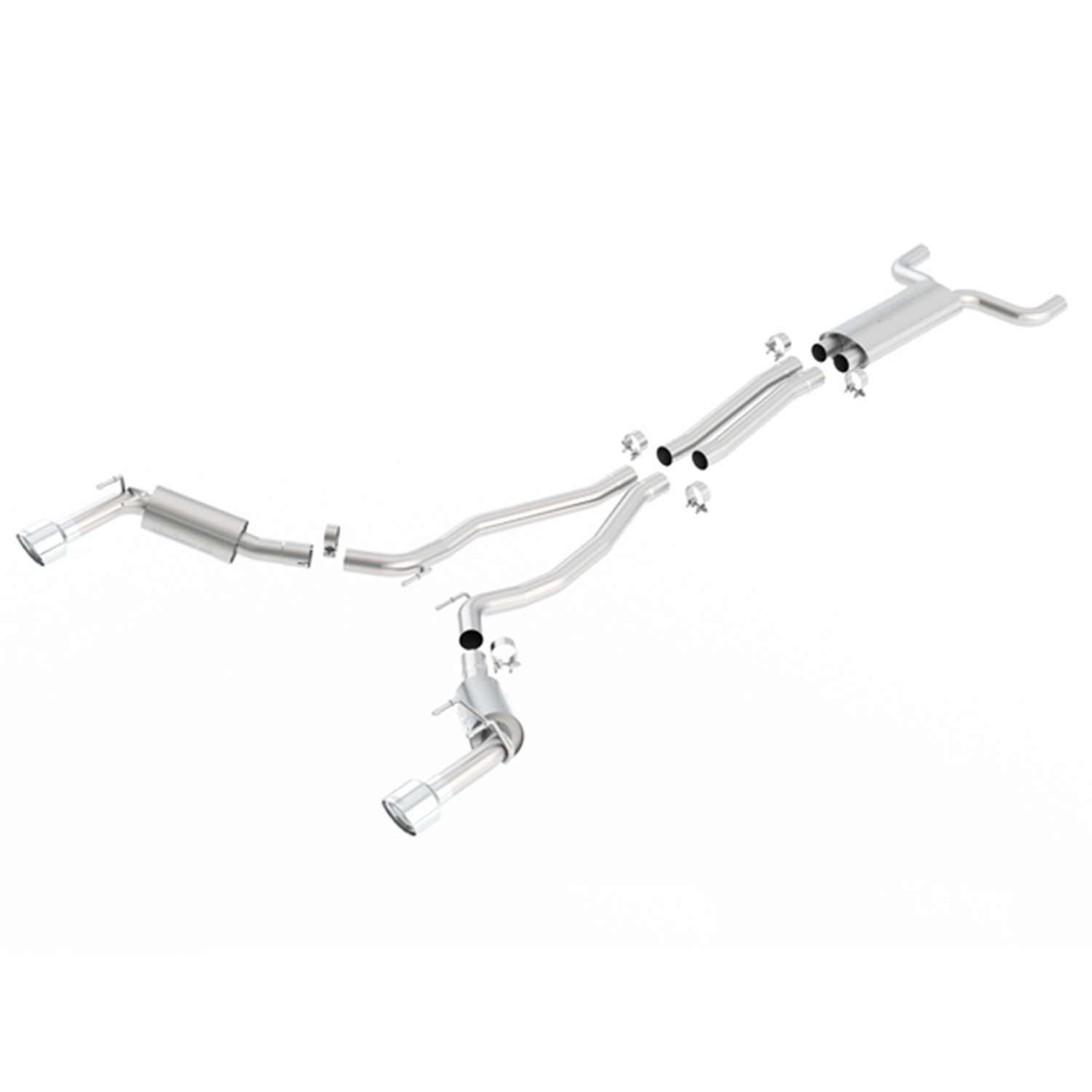 Fits vehicles WITHOUT Ground Effects Package (GFX). For installation of this system on a Camaro Convertible, Spacer Kit PN # 60545 is required. EC-Type approved systems are those that comply with European Union rules for motor vehicles, vehicle systems and components. Front muffler/ resonator contains an internal merge X-Pipe for increased performance and improved performance. Features 4.5" polished T-304 stainless steel tips. BORLA Cat-Back & Axle-Back exhaust systems feature patented straight-through and multi-core technology to unleash hidden horsepower. Increased exhaust velocity adds power, driving excitement, fuel economy, and the distinctive BORLA Sound of Power respected by motoring enthusiasts everywhere. Each system is built from premium T-304 austenitic stainless steel, superior to T-400 series knockoffs (such as 409), to give you the absolute best in performance and durability. Ultra-smooth mandrel bends ensure maximum flow & power, and precision computer numerical control (CNC) manufacturing ensures an accurate fit. Best of all, BORLA stands behind every system with a Million-Mile in the USA and Canada (1.6 million kilometer). Products sold outside of the USA and Canada carry a 3-year limited warranty. Just what you'd expect from the world's most experienced (and most winning) exhaust brand.