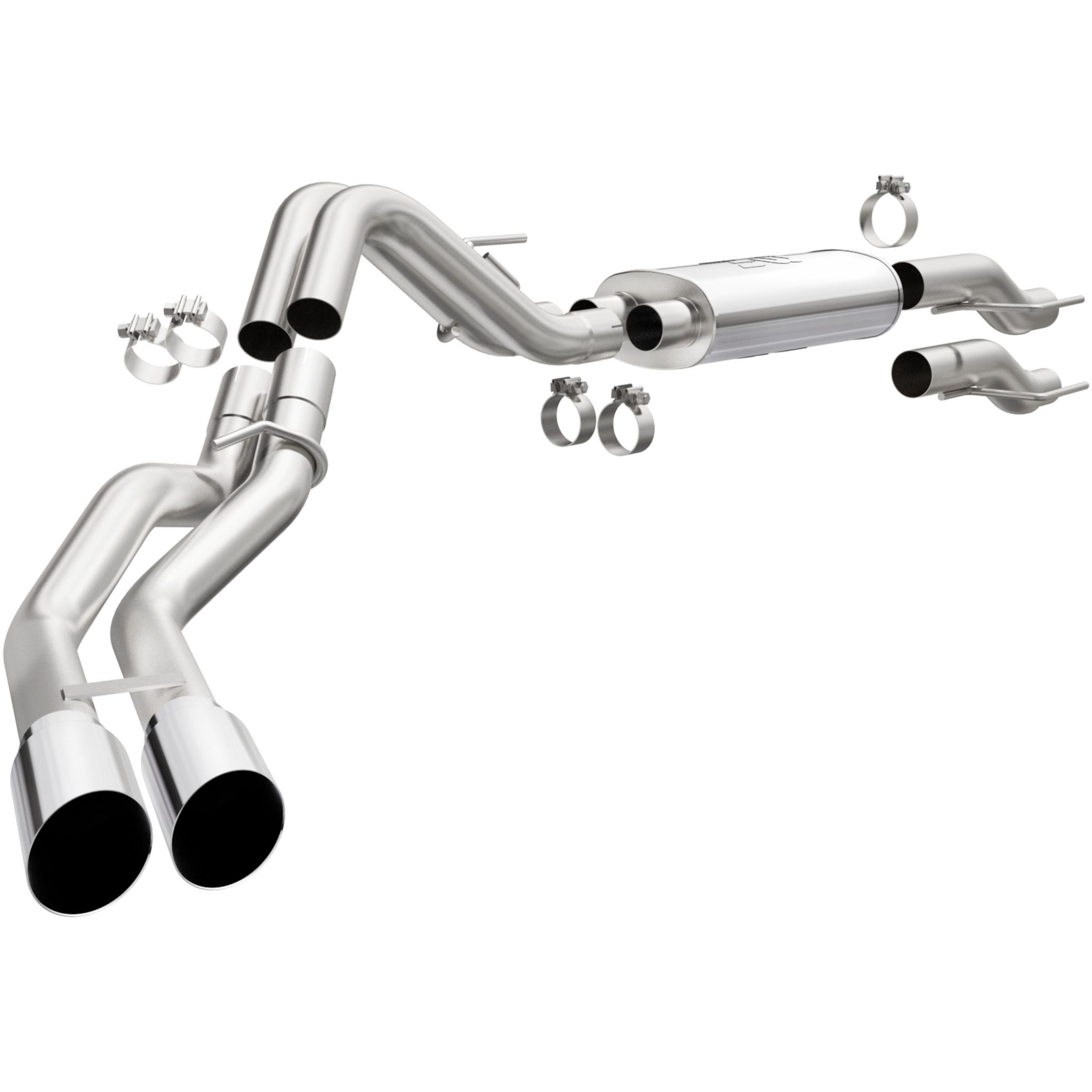 The MagnaFlow Street Series Cat-Back Performance Exhaust System #19565 works with all 2015-2023 and 2021+ engine variants of the Ford F-150. This system brings its aggressive sound to your truck’s engine in addition to MagnaFlow’s deep signature exhaust tone and dyno proven performance enhancements. It does all this while keeping volume at a reasonable level in the truck’s interior. MagnaFlow #19565 features durable 100% stainless steel construction, a single straight-through muffler, 3” mandrel bent tubing and dual passenger-side angled exit after the rear tire with polished 3.5” tips. Cutting-edge CNC precision robotic manufacturing is used to make sure that the exhaust kit’s direct-fit layout will bolt on easily for installation.